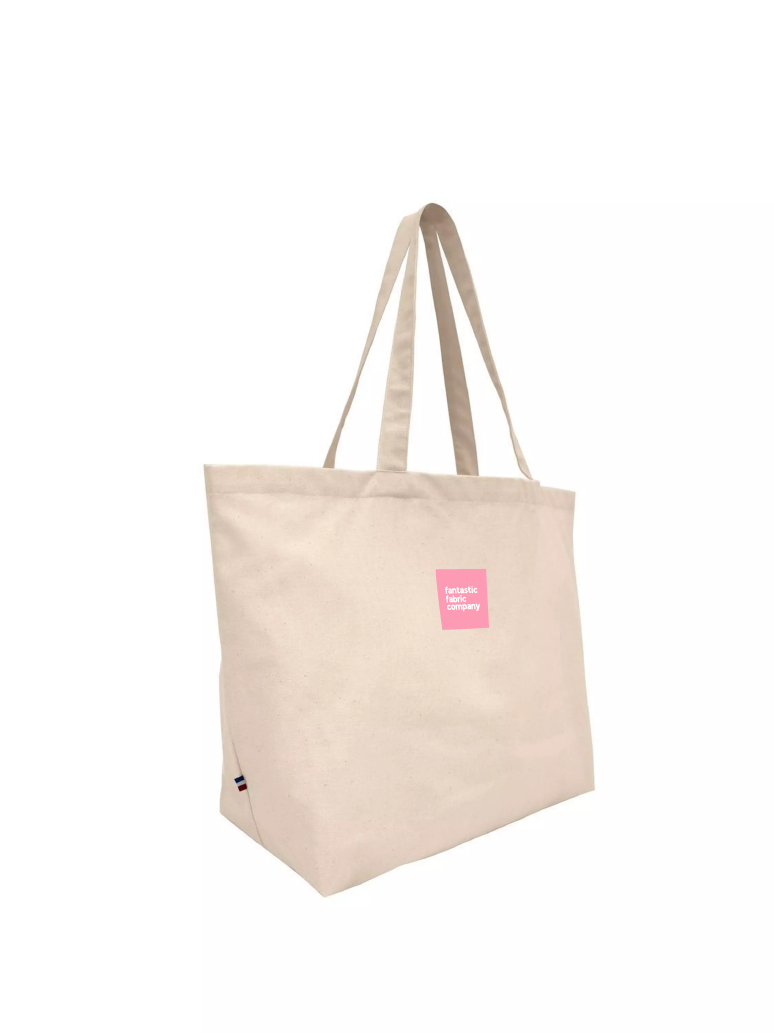 Crafted in France from thick, 100% organic cotton, this spacious bag combines durability with style. In a natural off-white color, it features a vibrant brand print on one side and a sewn-on patch on the other.